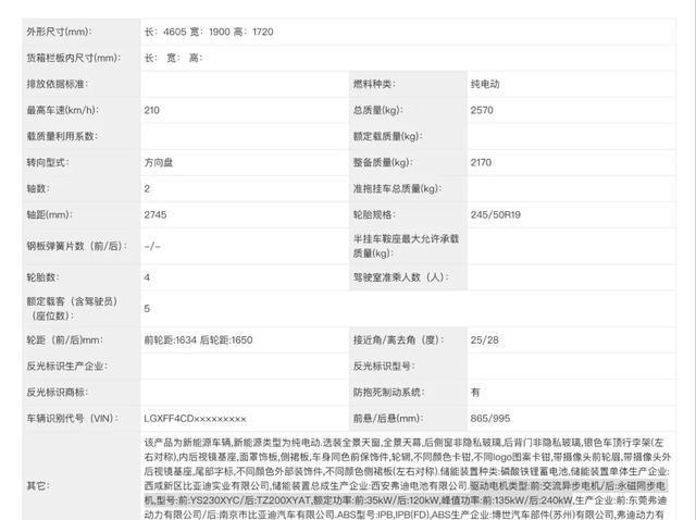 目前优选策略比亚迪还没有公布这些车型电池容量,但是从整备质量和总质量与现有车型对比看,60-80度电池的可能性很大,放在迪子的车系中,还是很亮眼的。
