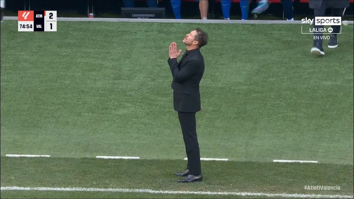 他进球后,我是这样的(双手举向天空),因为我感谢他的天赋。那是一个不可思议的精彩进球,来自普维尔的妙传,格列兹曼的停球、射门、跑位……他就是这样的关键先生。我们每天都和他交流,因为他无论在比赛哪个阶段上场都是决定性的。当他拿出这样的表现时,他自然会被提升到一个应有的位置:俱乐部的传奇、俱乐部的射手王。我们对安托万(格列兹曼)的感激之情毫无保留。